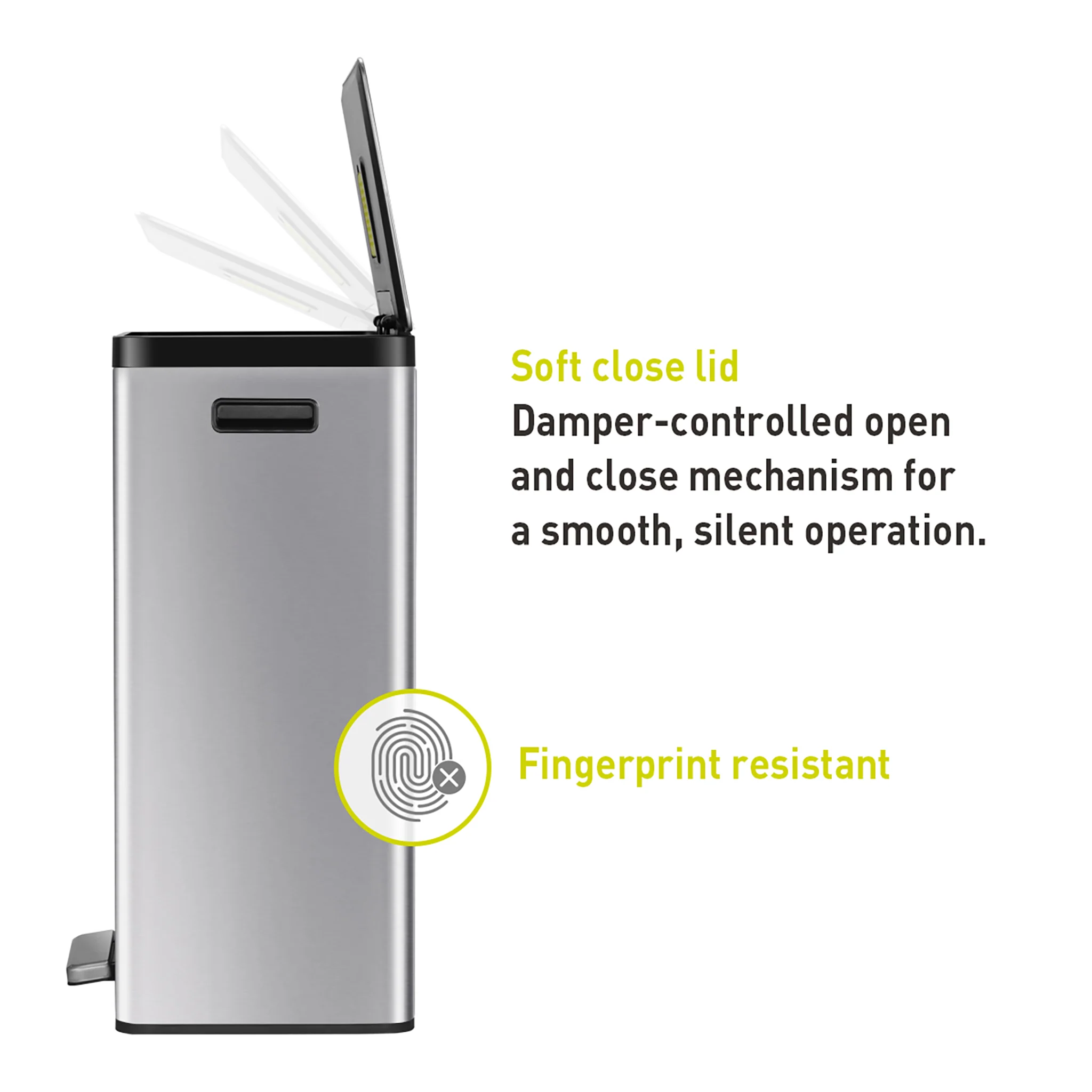 - Superior Stainless Steel Build- Our heavy-duty stainless steel garbage cans for kitchen boasts an ultimate fingerprint-resistant stainless steel construction that provides a durable and visually appealing look for any home decor styles.