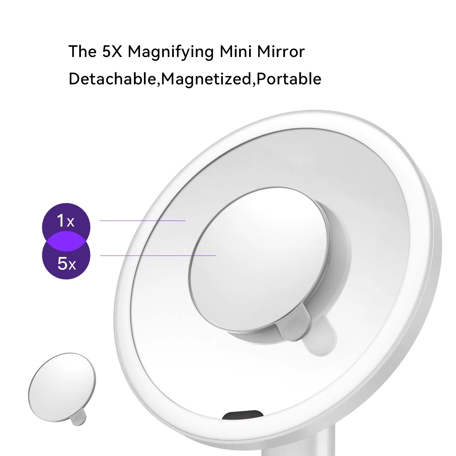 - Additional 5x Portable Mirrors: This lighted makeup mirror with magnification comes with a detachable, magnetized 5x mirror, perfectly portable and accompanied by a carrying pouch for on-the-go touch-ups.