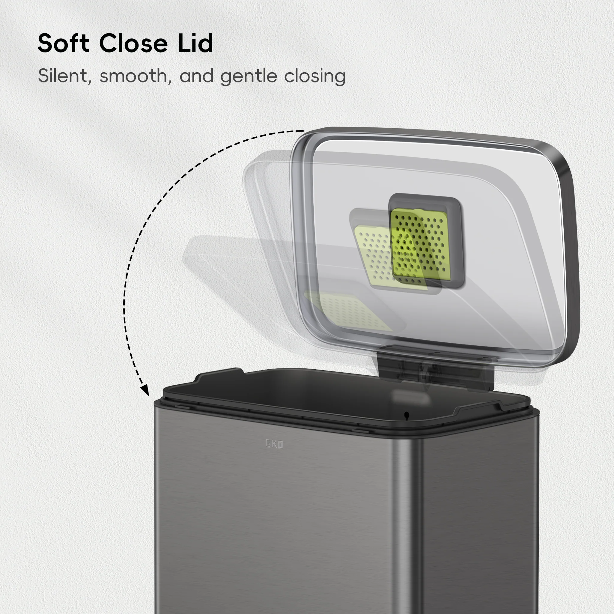 - Whisper-quiet Closing - The rugged step pedal mechanism is built to withstand years of daily use, and the bi-force damper soft open and close lid prevents slamming and banging.