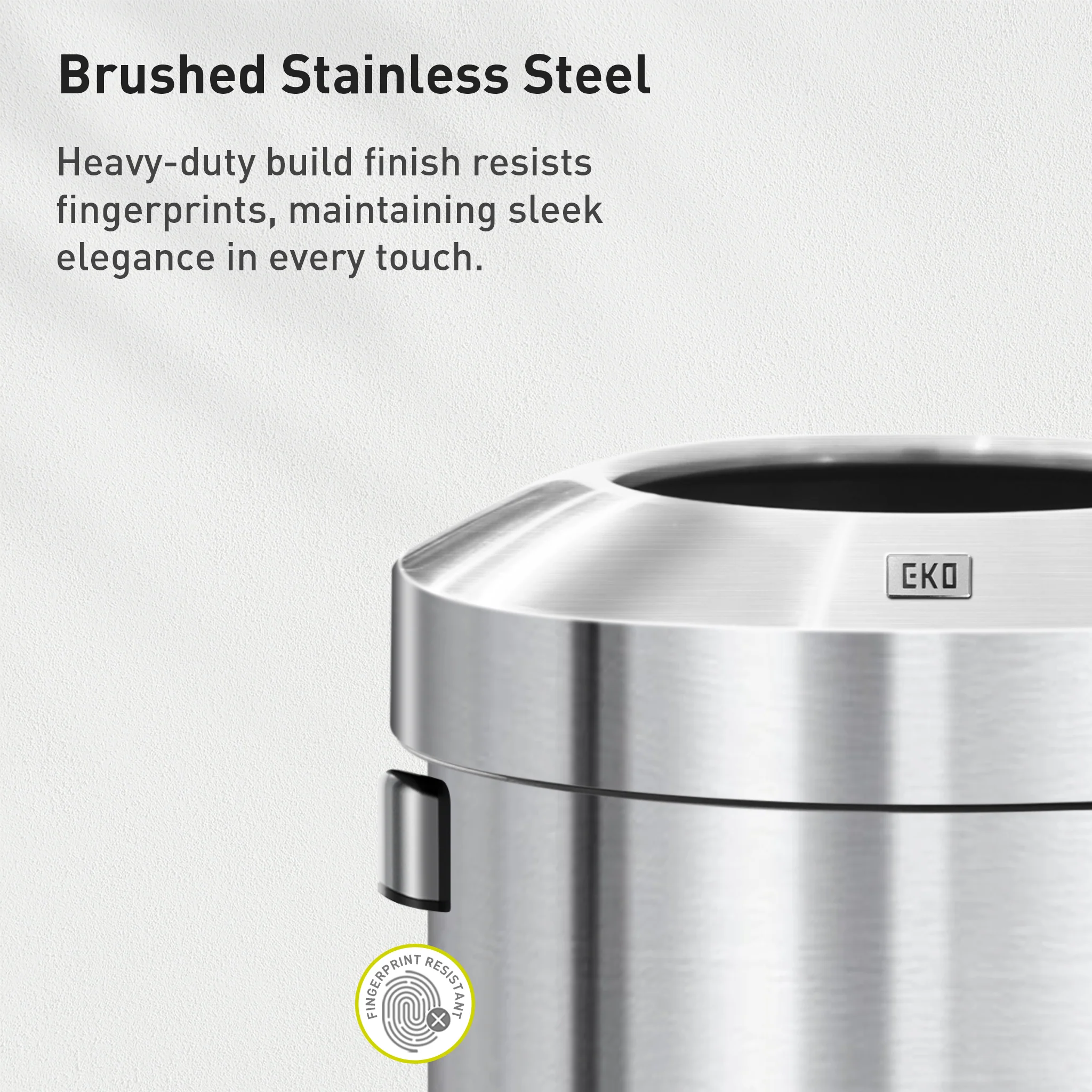 - SLEEK, FINGERPRINT-RESISTANT DESIGN: Keep your trash can looking spotless with a stainless steel finish that resists fingerprints and minimizes maintenance.